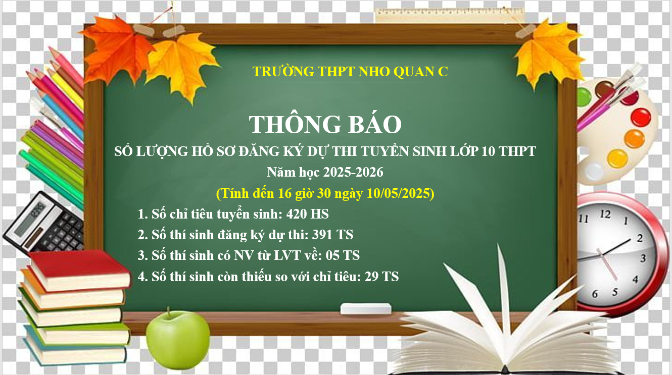 Trường THPT Nho Quan C thông báo danh sách thí sinh đăng ký dự thi Tuyển sinh 10 THPT năm học 2025-2026. (16h30 ngày 10/5/2025)